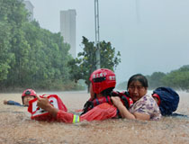 暴雨中转移群众