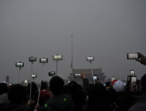 雾霾中的升旗仪式
